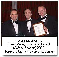 Tolent Construction Limited has an outstanding safety record and in recognition has been awarded ROSPA Gold Awards in 1997, 1998, 1999 and 2000 and Gold Medal Awards in 2001, 2002, 2003 and 2004. Tolent also won the Tees Valley Business Award (Safety Section) in 2002.