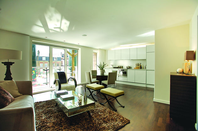 Above this was an amphitheatre of 72 apartments. All of the one and two bedroom apartments have access to a balcony overlooking either the central courtyard or a landscaped garden to the rear.
